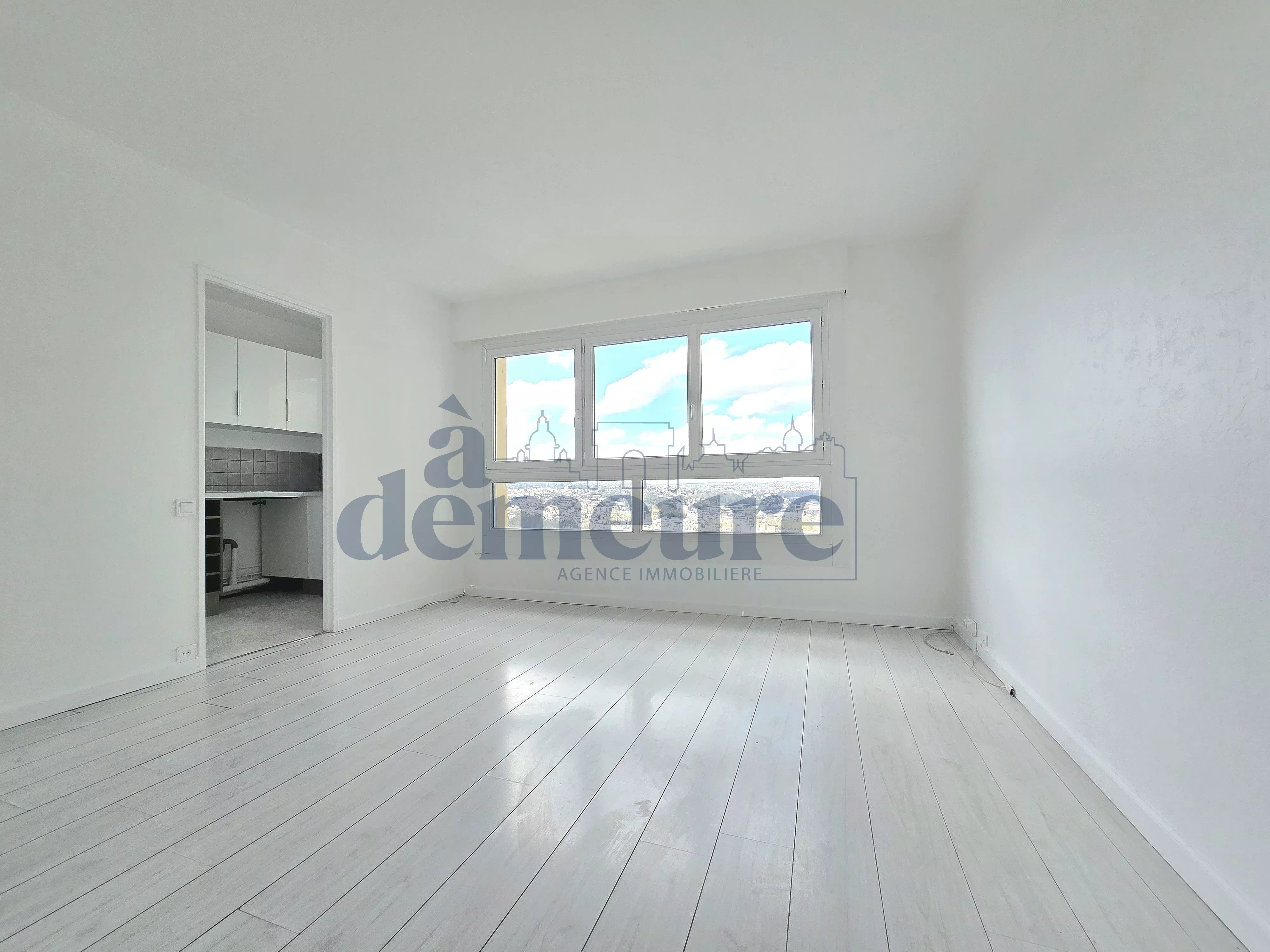 Au onzième étage, un Studio avec une vue sur l'Ouest parisien, se compose d'une entrée avec de nombreux rangements, d'une pièce de vie de 17m2, d'une cuisine séparée (possibilité d'ouvrir sur le séjour), d'une salle d'eau et d'un wc séparé.